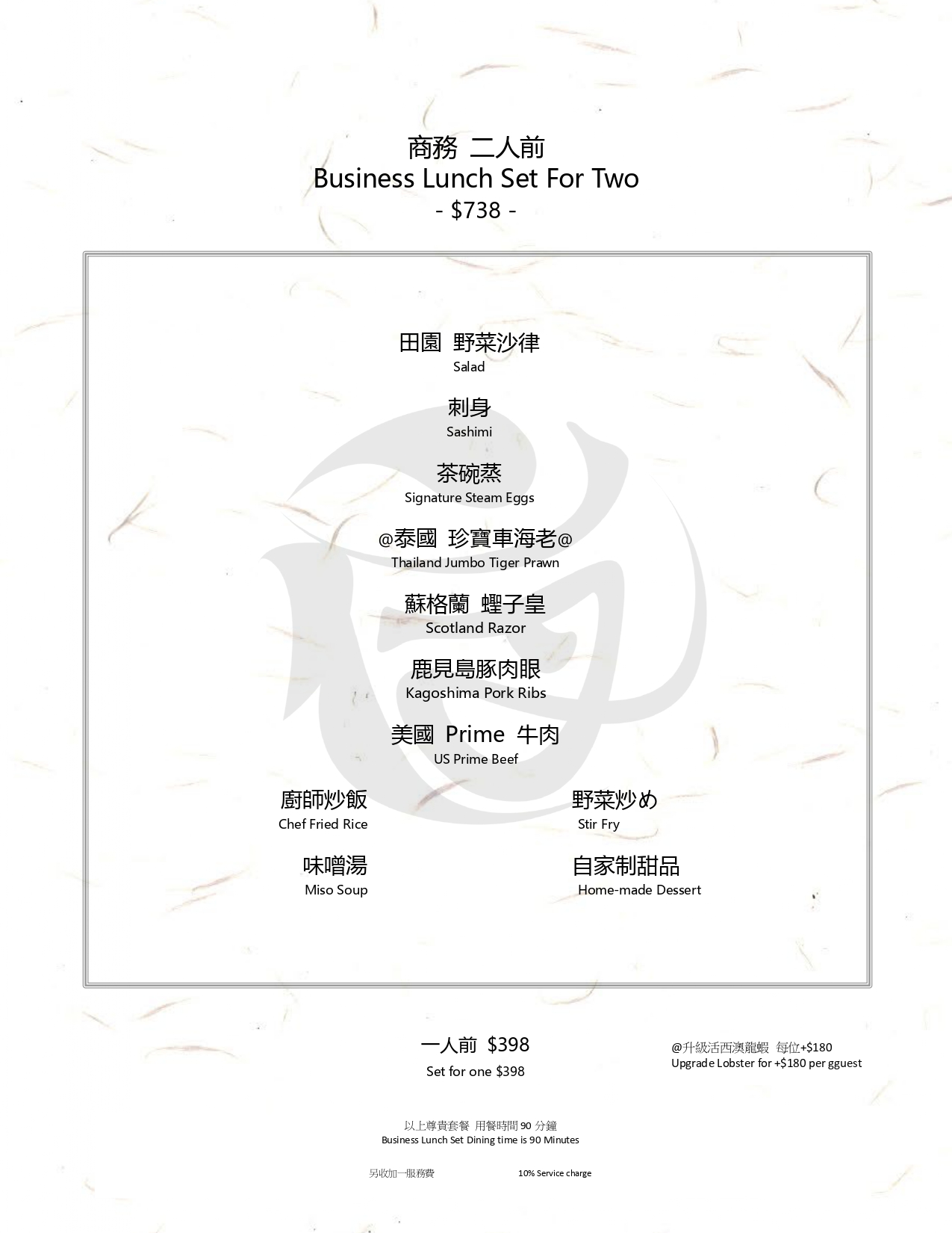 以上尊貴套餐 用餐時間90分鐘